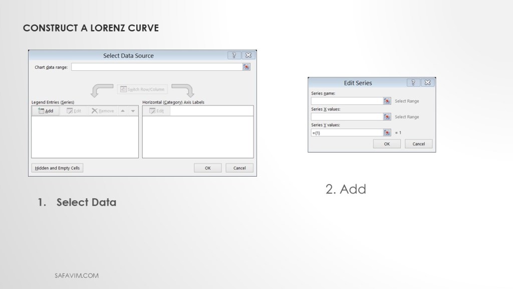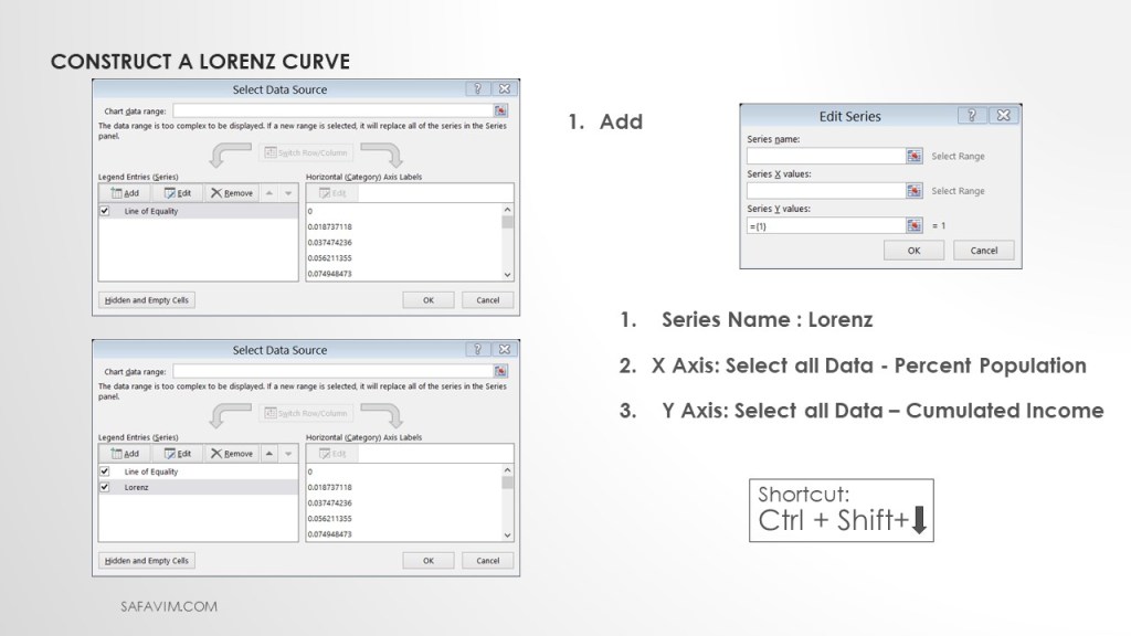 To construct the Lorenz curve, In the Edit Series window, using the short cut follow these steps: