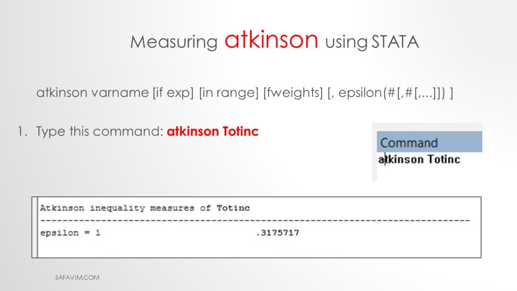 atkinson varname [if exp] [in range] [fweights] [, epsilon(#[,#[,…]]) ]