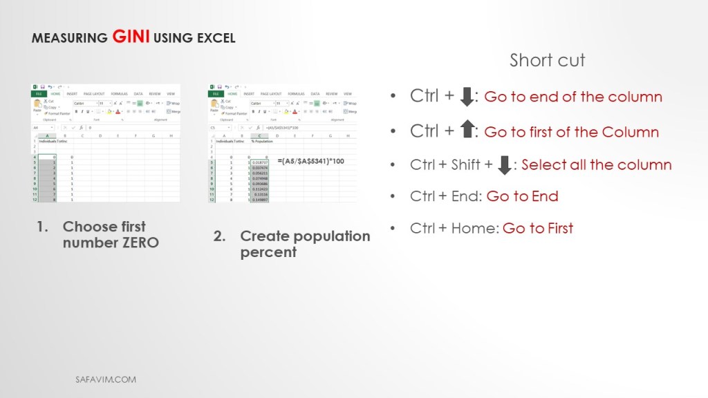 As picture 21 shows, using these two formula we can calculate the GINI index. 1- (=0.5-F5342) 2- (=J31/0.5)
